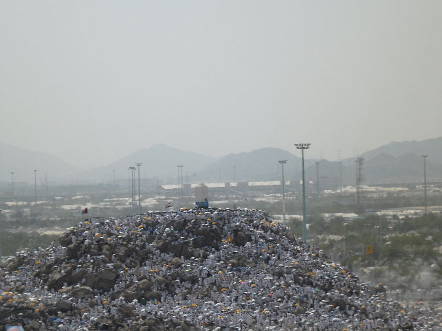 - Le pèlerin ramasse 49 petits cailloux (jamrat) pour lapider les Stèles (qui symbolisent Satan).
