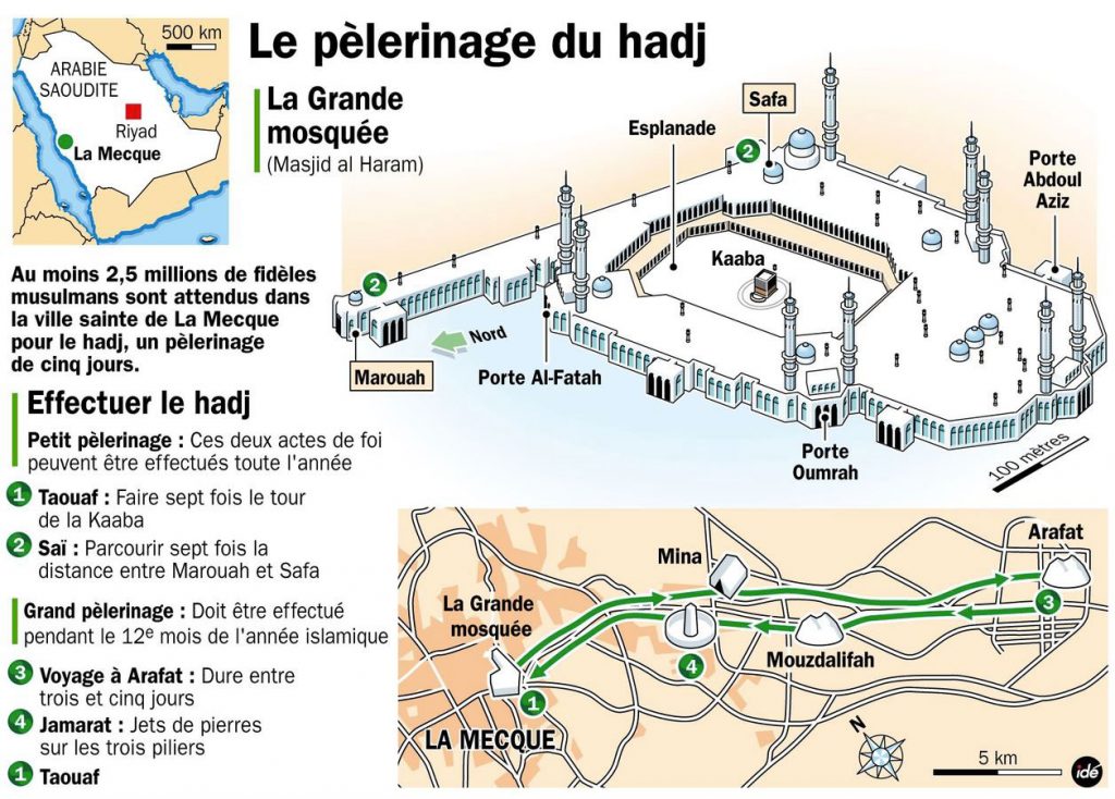 NB : le pèlerin doit impérativement faire le Tawâf d’adieu avant de quitter la Mecque.